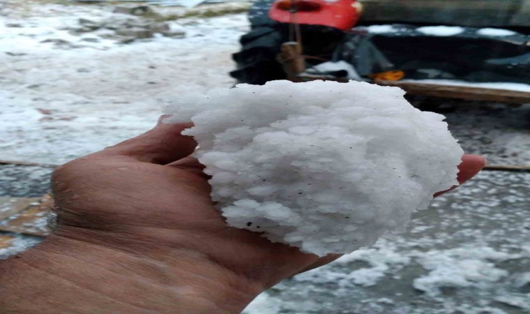 Ardahan’ın Damal ilçesinde etkili olan dolu günlük yaşamı olumsuz etkilerken, yollarda trafik akışı olumsuz etkilendi.