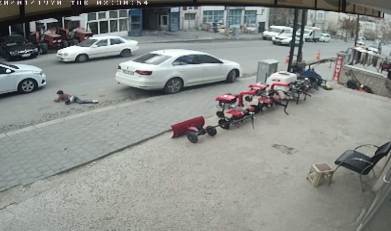 Kazada hafif yaralanan çocuk hastanede tedavi altına alınırken, kaza anı ise çevredeki iş yerlerinin güvenlik kameralarınca saniye saniye kaydedildi.