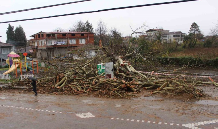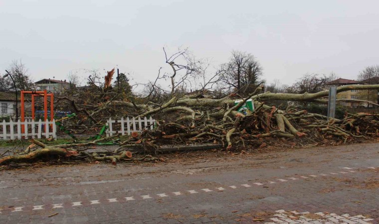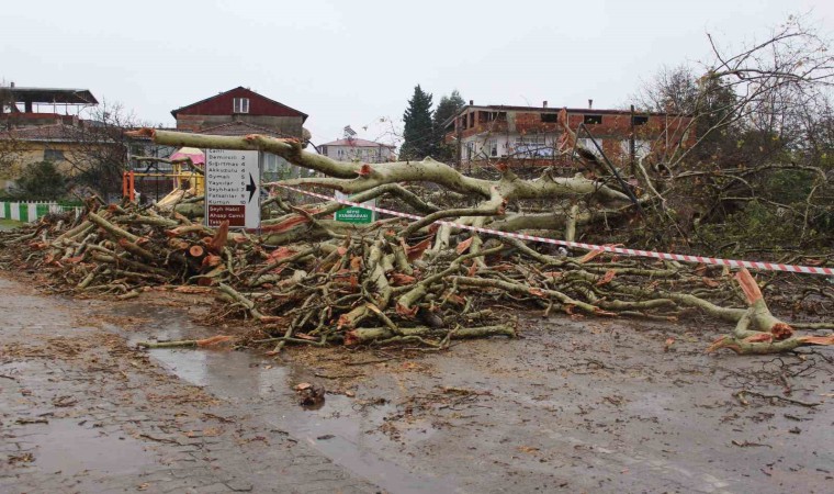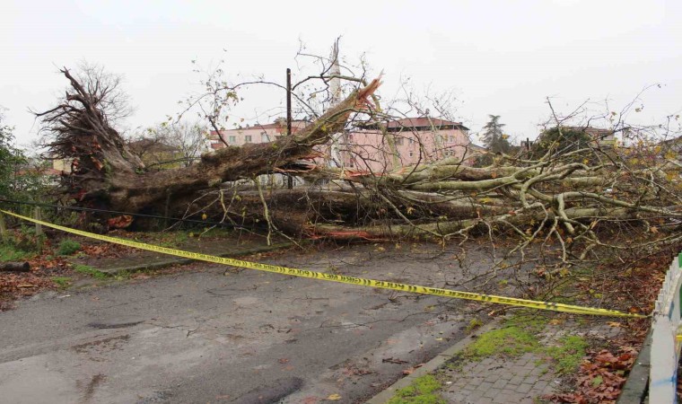 Samsun’un Çarşamba ilçesinde 650 yıllık anıt ağaç, fırtınaya dayanamayarak devrildi.