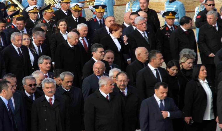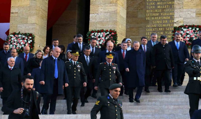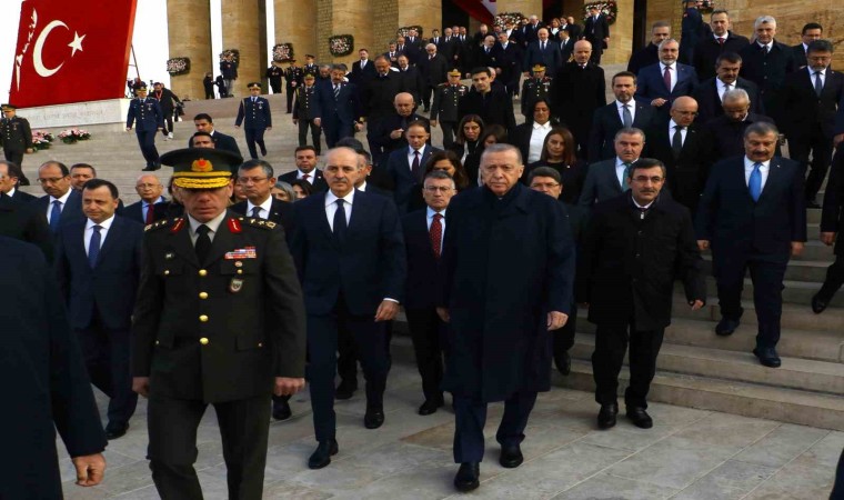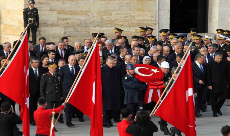 Türkiye Cumhuriyeti’nin kurucusu Mustafa Kemal Atatürk, ebediyete irtihalinin 85. yılında Anıtkabir’de düzenlenen devlet töreni ile anıldı. Anıtkabir’deki tören, saat 08.50’de devlet erkanının Aslanlı Yol’da yürüyüşü ile başladı. Başkanlığını Cumhurbaşkanı Recep Tayyip Erdoğan’ın yaptığı kortejde, Türkiye Büyük Millet Meclisi (TBMM) Başkanı Numan Kurtulmuş, Cumhurbaşkanı Yardımcısı Cevdet Yılmaz, Cumhurbaşkanlığı Kabinesi üyeleri, MHP Genel Başkanı Devlet Bahçeli, CHP Genel Başkanı Özgür Özel, İYİ Parti Genel Başkanı Meral Akşener, yüksek yargı organlarının başkanları, Genelkurmay Başkanı Orgeneral Metin Gürak ve kuvvet komutanları, siyasi parti temsilcileri, bürokratlar ve diğer devlet erkanı yer aldı. Cumhurbaşkanı Erdoğan’ın kırmızı ve beyaz karanfillerden oluşan ay yıldızlı çelengi Atatürk’ün mozolesine bırakmasının ardından Atatürk’ün vefat ettiği saat olan 09.05’te bir dakikalık saygı duruşunda bulunularak, İstiklal Marşı okundu. Cumhurbaşkanı Erdoğan ve protokolde yer alan devlet erkanı, saygı duruşunun ardından Misak-ı Milli Kulesi’ne geçti. Anıtkabir Özel Defteri’ni imzalayan Erdoğan, deftere şunları yazdı: