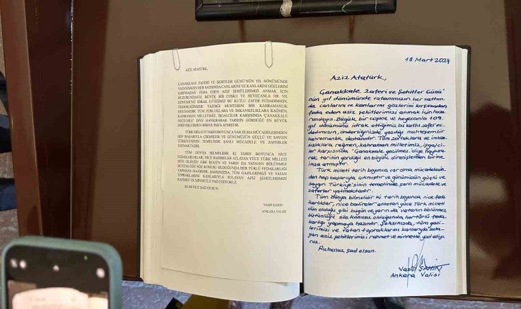“Aziz Atatürk, Çanakkale Zaferi ve Şehitler Günü’nün yıl dönümünde vatanımızın her sathında canlarını ve kanlarını gözlerini kırpmadan feda eden aziz şehitlerimizi anmak için huzurundayız. Büyük bir coşku ve heyecanla 109. yıl dönümünü idrak ettiğimiz bu kutlu zafer; ecdadımızın, önderliğinizde yazdığı muhteşem bir kahramanlık destanıdır. Tüm zorluklara ve imkansızlıklara rağmen, kahraman milletimiz, işgalciler karşısında ’Çanakkale Geçilmez’ diye haykırarak tarihin gördüğü en büyük direnişlerden birine imza atmıştır. Türk milleti tarih boyunca var olma mücadelesinden hep başarıyla çıkmıştır ve günümüzün güçlü ve saygın Türkiye’sinin temelinde şanlı mücadele ve zaferler yatmaktadır. Tüm dünya bilmelidir ki tarih boyunca nice fedakarlıklar, nice badireler atlatan yüce Türk milleti dün olduğu gibi bugün ve yarın da vatanın bölünmez bütünlüğü söz konusu olduğunda her türlü fedakarlığı yapmaya hazırdır. Şahsınızda, tüm gazilerimizi ve vatan topraklarını kanlarıyla sulayan aziz şehitlerimizi rahmet ve minnetle yad ediyoruz. Ruhunuz şad olsun.”