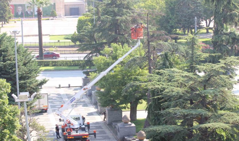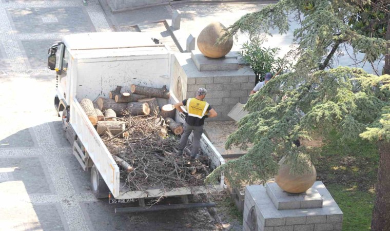 Samsun’da Anıtpark’ta kuruyan asırlık çam ağaçları, belediye ekipleri tarafından kesilerek kaldırıldı.