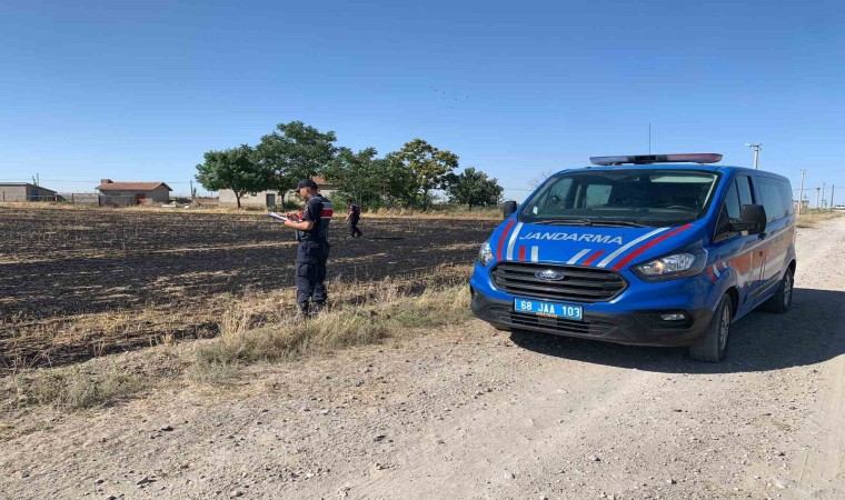 Aksaray’da kendi tarlasında anız yakan çiftçiye jandarma ekipleri tarafından idari işlem uygulandı ve ceza kesildi.