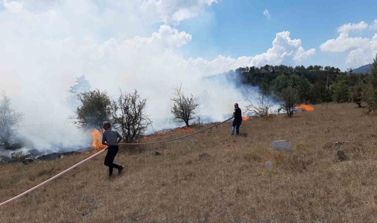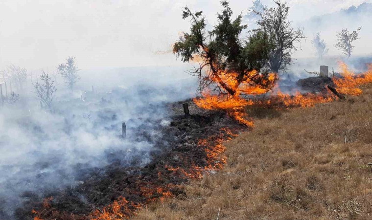 Bolu’nun Mudurnu ilçesinde anızda çıkan yangın nedeniyle 4 tarla bir mezarlık küle döndü. Yaklaşık 20 dönümlük arazi alev alev yandı.