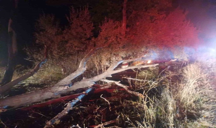 Yanan ağaçlara itfaiye ekipleri müdahale ederek söndürdü, ardından ağaçlar kenara çekilerek köy grup yolu trafiğe açıldı.