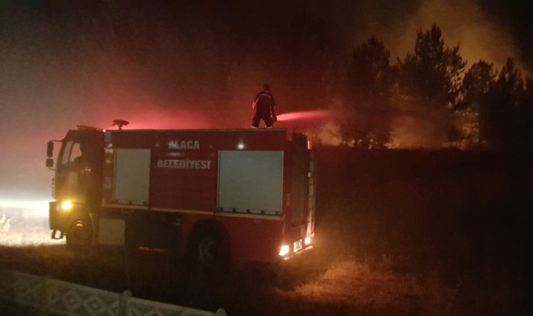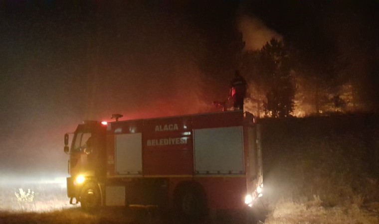 Çorum’un Alaca ilçesinde çıkan anız yangını çamlık alana sıçradı. Yangında çok sayıda çam ağacı zarar gördü.