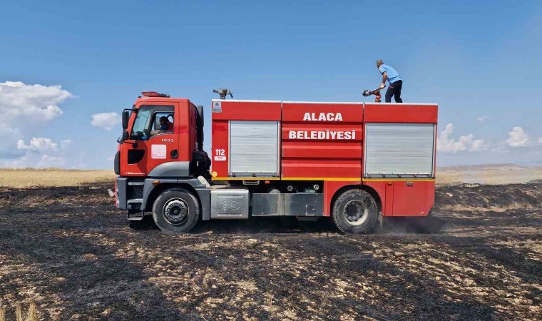 Çorum’un Alaca ilçesinde çıkan anız yangını ormanlık alana sıçramadan söndürüldü.