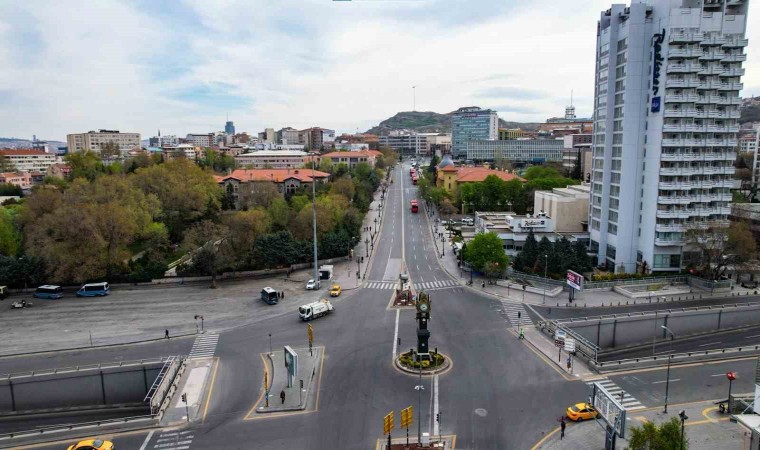 Başkent Ankara’da 9 günlük tatil nedeniyle Ramazan Bayramı’nın ilk günü cadde ve sokaklar boş kaldı. Kentin en işlek noktalarından olan Atatürk Bulvarı, Talatpaşa Bulvarı, Celal Bayar Bulvarı, İstiklal Caddesi, Anafartalar Caddesi, Mithatpaşa Caddesi, ana arterler ve sokaklardaki sessizlik dron ile havadan görüntülendi.
