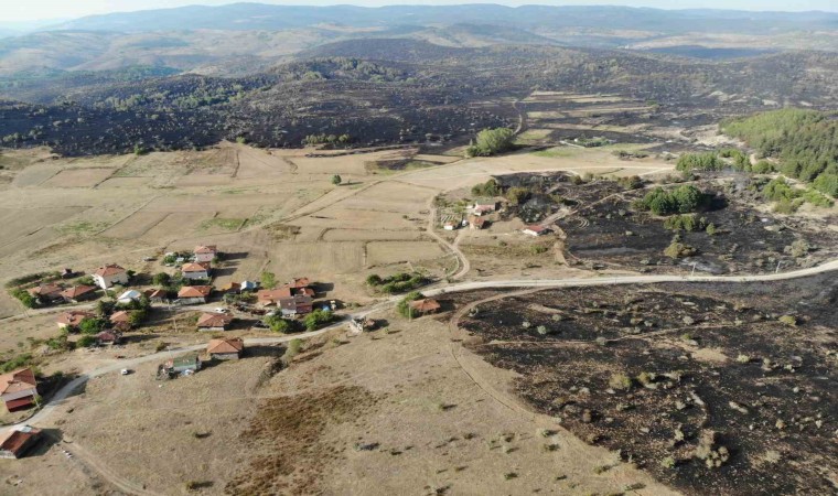 Ankara’nın Kızılcahamam ilçesine bağlı kırsal Şahinler Mahallesi yakınlarında dün saat 12.30’da çıkan yangın, Bolu’nun Gerede ilçesindeki ormanlık alana sıçradı. Alevlerin etkilediği Kovacık ve Demirler mahallelerindeki 123 kişi tedbir amaçlı evlerinden tahliye edilirken, gece saatlerinde kuvvetli rüzgar nedeniyle ormanlık alan sabah saatlerine kadar yanmaya devam etti. Sabahın ilk ışıklarıyla birlikte ortaya çıkan manzara yangının etkisini gözler önüne serdi. Yangının etkisiyle kül olan Demirler köyü çevresindeki ormanlık alan ve Berçin Çatak Yaylası dron ile havadan görüntülendi.
