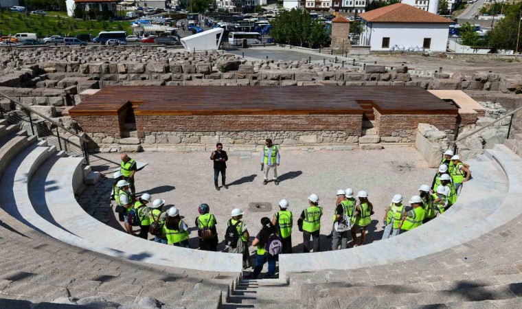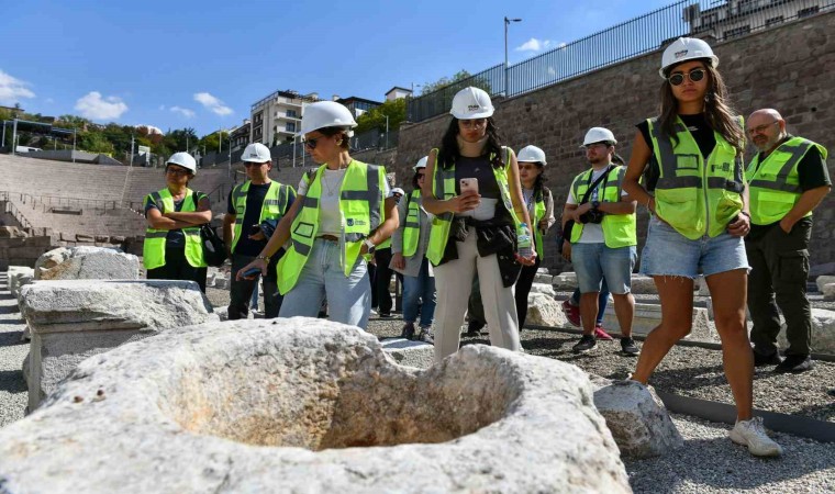 Ankara Büyükşehir Belediyesinin kent tarihini tanıtmak için düzenlediği Miras Şantiye Gezileri yoğun ilgi görmeye devam ediyor. Roma Tiyatrosu ve Arkeopark’ta yapılan çalışmalar hakkında vatandaşları bilgilendiren Kültür ve Tabiat Varlıkları Dairesi Arkeoloğu Kubilay Yılmaz, “Ankara Miras Şantiye Gezilerinin çok sevildiğini görmekteyiz. Kültürel mirasımıza katkı sunmaya devam ediyoruz. Buraya gelen vatandaşlarımız aslında böyle bir şey olduğunu bilmiyordu. Gördüklerinde çok seviniyorlar ve belediyemize teşekkürlerini iletiyorlar. Aynı şekilde Roma Tiyatrosunu da Ankaralı vatandaşlarımızın çok büyük kısmı bilmemekteydi, yine şantiye gezileri ile vatandaşlarımız böyle bir hazineye sahip olduklarını biliyorlar” ifadesini kullandı.