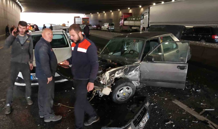 Ankara’da iki otomobilin çarpışması nedeniyle meydana gelen 14 araçlık zincirleme kazada 7 kişi yaralandı.