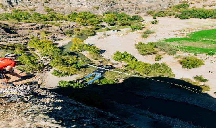 Başkentte ’sakin şehir’ unvanıyla bilinen Güdül ilçesi bu hafta sonu extrem sporu tutkunlarını ağırladı. İlçedeki Bizans döneminde kaldığı tahmin edilen İnönü Mağaralarının en tepesine çıkan yüzlerce sporcu, 2012’den bu yana kayalıktan atlama sporuyla uğraşan RJTurkey ekibi rehberliğinde kendilerini 70 metre yükseklikten boşluğa bıraktı.
