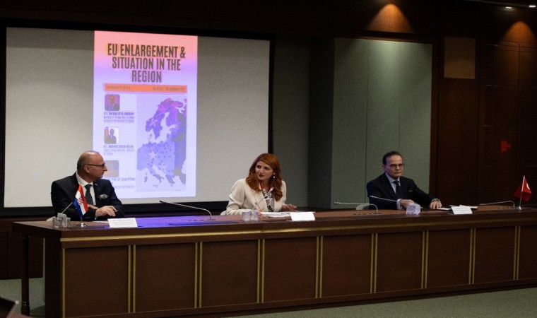 Cumhurbaşkanlığı Millet Kütüphanesi’nde Ankara Hacı Bayram Veli Üniversitesi Öğretim Üyesi Doç. Dr. Şuay Nilhan Açıkalın’ın moderatörlüğünde düzenlenen “Avrupa Birliği Genişlemesi ve Bölgedeki Güncel Durum” başlıklı panelde Türkiye-AB ilişkileri ele alınarak, sorunlar ve çözüm önerileri tartışıldı. Açılış konuşmalarını Dışişleri Bakan Yardımcısı Büyükelçi Mehmet Kemal Bozay ile Hırvatistan Dış ve Avrupa İşleri Bakanı Gordan Grlic Radman’ın yaptığı panelde, Avrupa Birliği ülkeleri büyükelçilerinin yanı sıra akademi dünyasından önemli uzmanlar, araştırmacılar ve öğrenciler yer aldı. Panelde Avrupa Birliği’nin geleceği ve Türkiye-AB ilişkileri başta olmak üzere Balkanlar’da AB genişlemesi, AB ile ortak iş birliği alanları ve Türkiye-Hırvatistan ilişkileri de ele alındı.