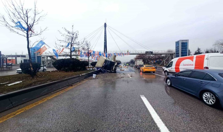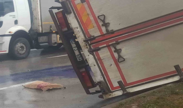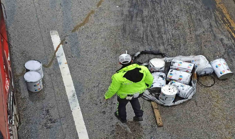 Olay, Ankara’nın Sincan ilçesinde sabah saatlerinde meydana geldi. Ayaş yolu istikametinden seyir halinde olan 07 FJ 694 plakalı boya yüklü kamyon, 06 SGG 39 plakalı tıra arkadan çarptı. Çarpışmanın etkisiyle boya yüklü kamyon devrildi. Devrilen kamyonun içerisindeki boya ise yola saçıldı.