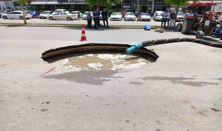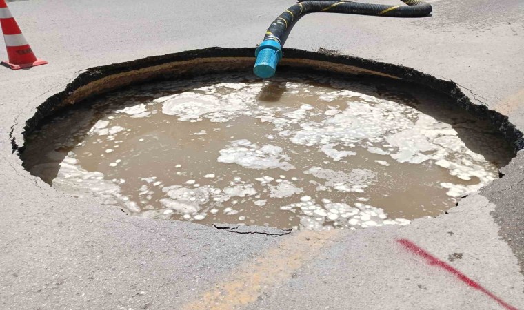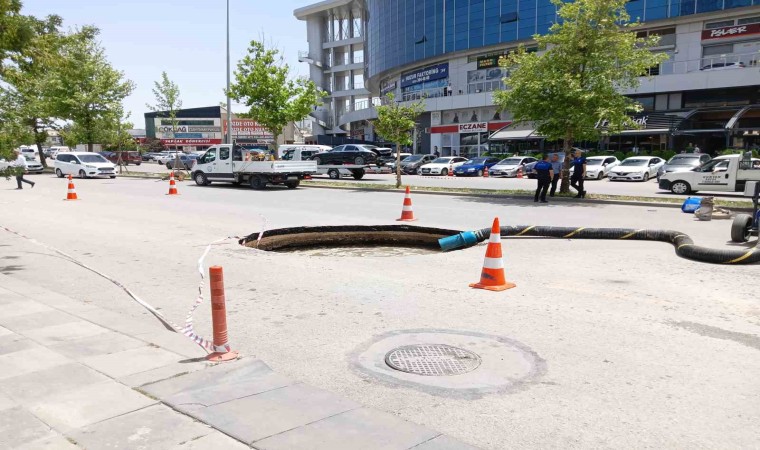 Ankara’da bir caddede meydana gelen göçük sebebiyle 10 metrelik çukur oluştu.