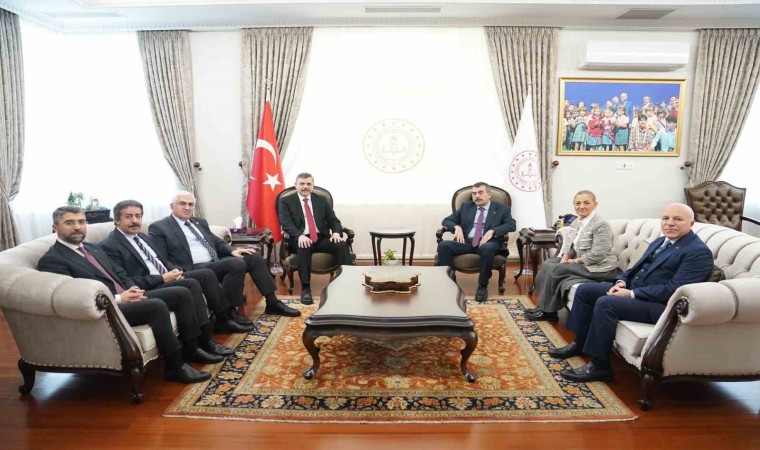 Ankara’daki ilk Erzurum zirvesi Milli Eğitim Bakanlığı’nda oldu. Vali Mustafa Çiftçi, Ak Parti Erzurum Milletvekilleri Fatma Öncü, Mehmet Emin Öz, Abdurrahim Fırat, Erzurum Büyükşehir Belediye Başkanı Mehmet Sekmen ve Ak Parti Erzurum İl Başkanı İbrahim Küçükoğlu, Milli Eğitim Bakanı Yusuf Tekin’i makamında ziyaret etti.