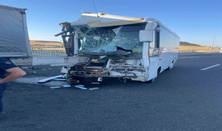 Ankara’nın Polatlı ilçesinde mevsimlik işçileri taşıyan servis, bir otomobile ve ardından tıra çarptı. Kazada 21 kişi yaralandı.