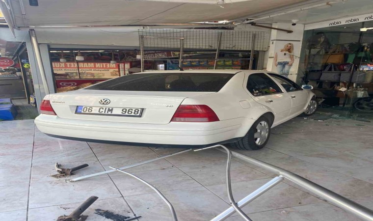 Ankara Sincan’da seyir halindeki bir otomobil, sürücüsünün direksiyon hakimiyetini kaybetmesi sonucu dükkanın içine girdi. Şoför, kazadan yara almadan kurtuldu.
