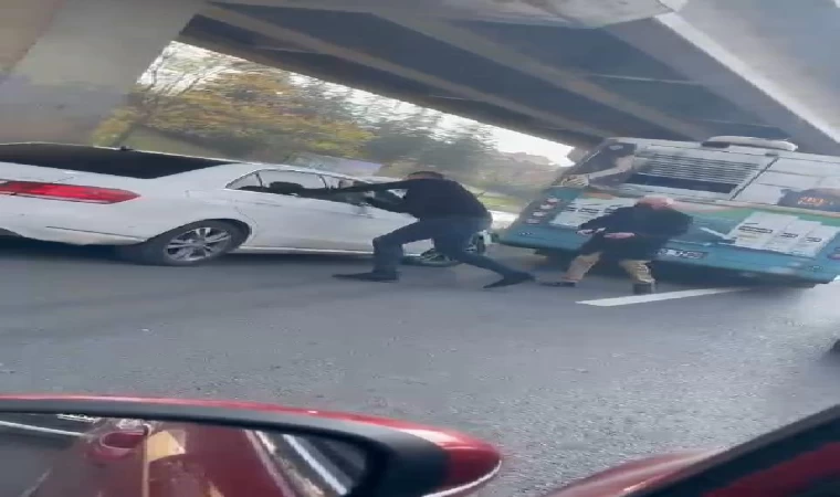 ANKARA, (DHA)- ANKARA'da özel halk otobüsü sürücüsü, akan trafikte aracını durdurup, kendisini geçmeye çalışan kadın sürücüyle tartıştı. Hakaretler ederek otomobilin camlarına vuran otobüs sürüsünün o anları trafikteki bir başka sürücü tarafından cep telefonuyla kaydedildi.