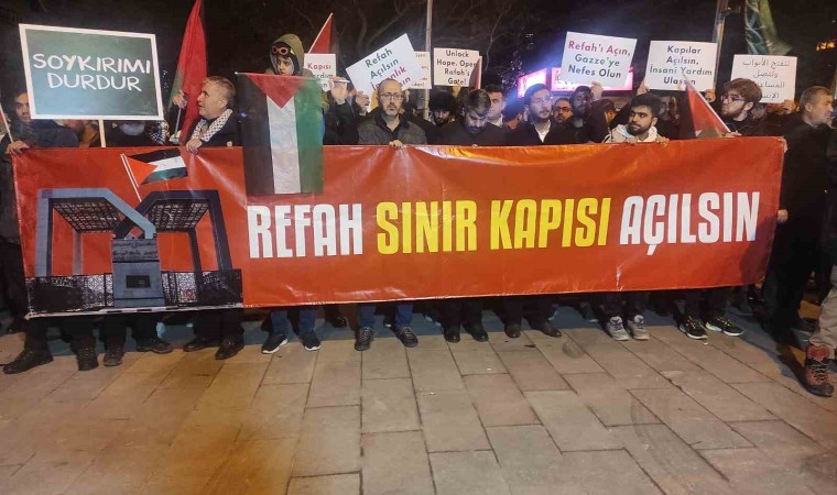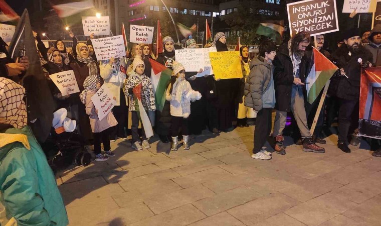 Ankara Filistin Dayanışma Platformu üyeleri, Mısır Büyükelçiliği önünde toplanarak, İsrail saldırısı altındaki Gazze’ye insani yardımların ulaşması için Gazze Şeridi sınırındaki Refah Sınır Kapısı’nın açılması çağrısı yaptı.