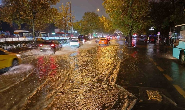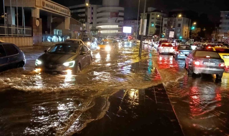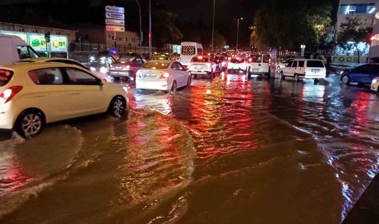 Ankara’da akşam saatlerinde başlayan sağanak yağış nedeniyle yolları su bastı, araçlar yolda kaldı.