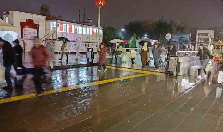 Ankara’da akşam saatlerinde sağanak yağış etkili oldu.