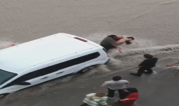 Başkent’te öğle saatlerinde başlayan gök gürültülü kuvvetli sağanak kısa sürede ortalığı göle çevirdi. Yenimahalle ilçesi Şehit Harun Parlak Caddesi’nde 2 çocuk sel sularına kapılarak önce harekat halindeki bir aracın altına girdi. Şoför çocukları fark etmeyerek hareket ederken, çocuklardan biri otomobilin altında sürüklendi. Tekrar sel sularına kapılarak sürüklenmeye devam eden çocuklar, bu kez de park halindeki bir otomobilin altında sıkıştı. Çevredeki vatandaşlar çocukları otomobilin altından çıkararak ilk müdahalede bulundu. Yaşananlar an be an güvenlik kameralarına yansırken, ihbar üzerine olay yerine sağlık ekipleri sevk edildi. Sele kapılan çocuklar, hastanelere sevk edildi.