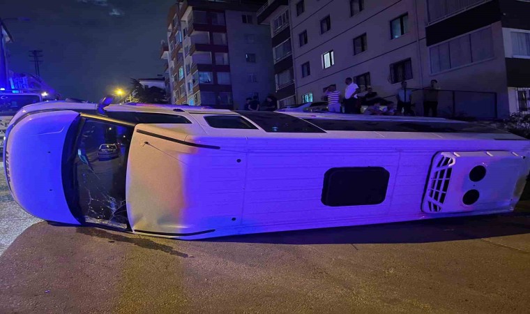 Ankara’nın Yenimahalle ilçesinde servis yan yattı, kazada yaralanan olmadı.
