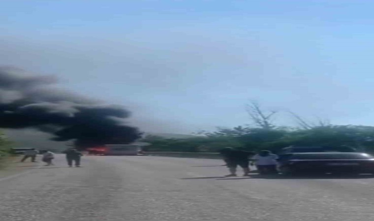 Ankara’nın Kızılcahamam ilçesinde kamp alanına gitmekte olan karavanda yangın çıktı.
