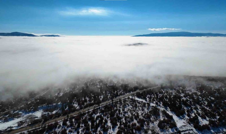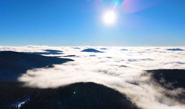 Sis bulutlarının arasından süzülen ağaçlar, zaman zaman doğanın gerçeküstü bir tabloya dönüştüğünü hissettirdi. Güneş ışınlarının sisin arasından süzülmesiyle oluşan büyüleyici manzara, doğaseverler ve fotoğraf tutkunları için eşsiz bir görsel şölen niteliği taşıdı.