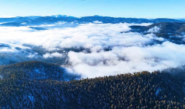 Ankara’nın yüksek rakımlı ormanlık alanları, kış mevsiminin tüm güzelliklerini gözler önüne serdi. Kar yağışıyla beyaza bürünen ağaçlar ve sabah saatlerinde bölgeyi kaplayan yoğun sis, adeta bir tabiat harikası oluşturdu.