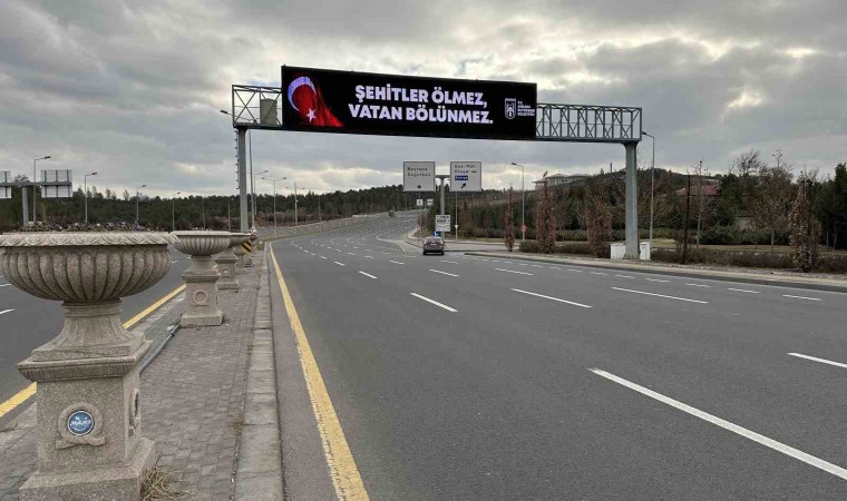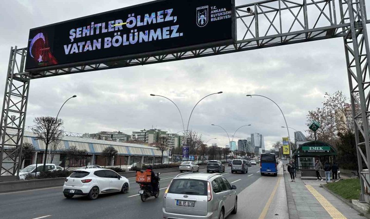 Ankara Büyükşehir Belediyesi (ABB), kentte bulunan led ekranlara “Şehitler Ölmez, Vatan Bölünmez” yazısını yansıttı.