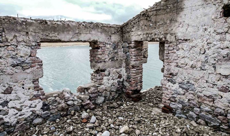 Ankara’nın içme suyu ihtiyacını karşılayan Çamlıdere ilçesindeki baraj sularının çekilmesi ile eski köyün kalıntıları gün yüzüne çıktı.