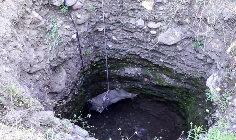 Bursa’nın İznik ilçesinde kuyuya düşen anne domuz, 5 saatlik operasyonun sonunda yavrularına kavuştu.