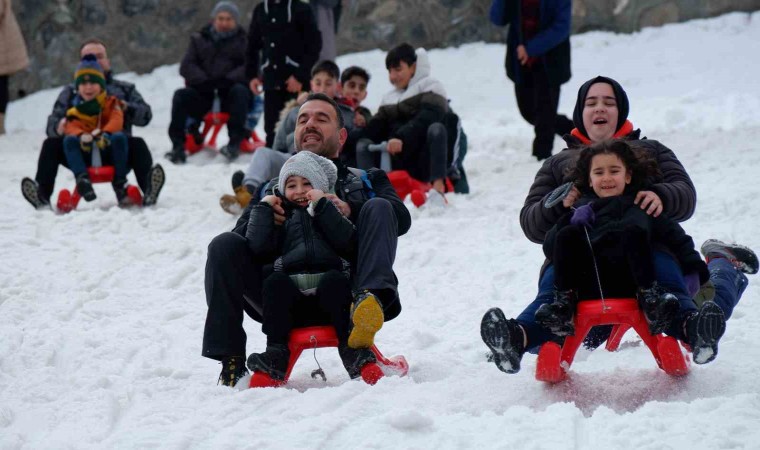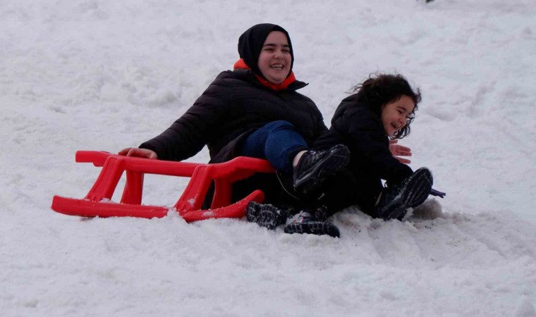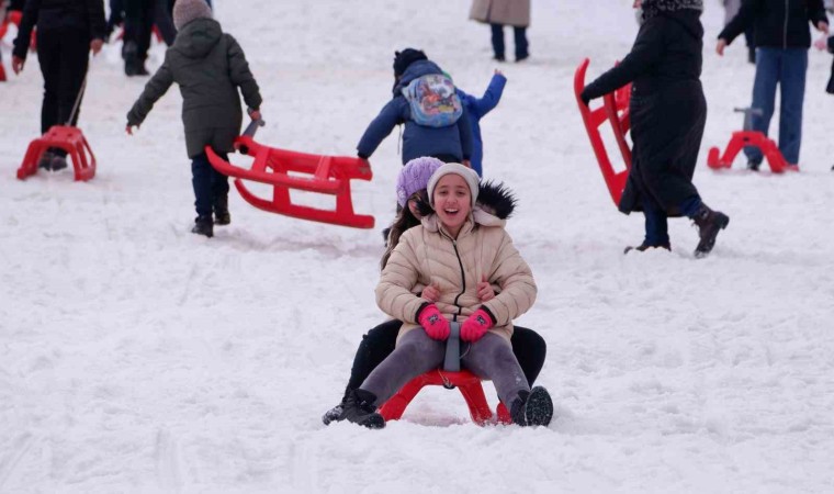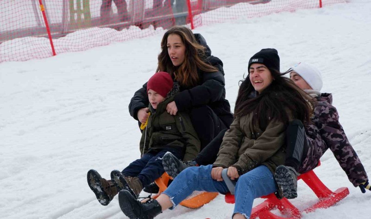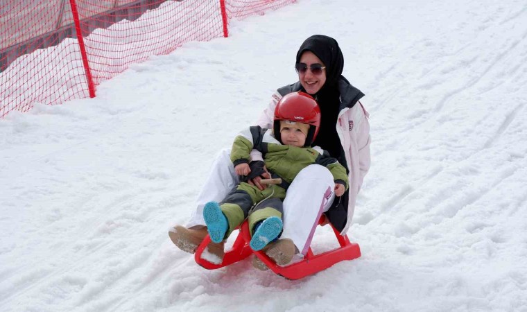 Palandöken Kayak Merkezi’nde anneler, çocuklarıyla kızakla kayıp keyifli ve unutulmaz anları birlikte yaşadı.