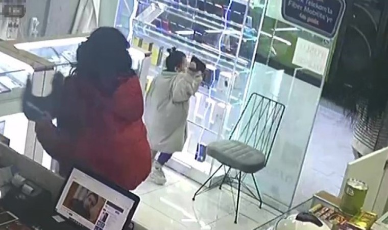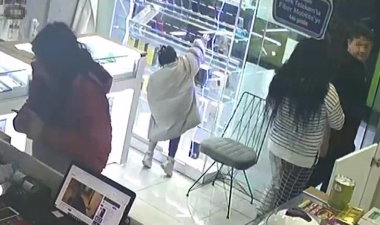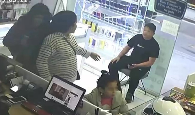 Kocaeli’nin İzmit ilçesinde bir iş yerine giren aile, satıcının dikkatini dağıtarak 2 cep telefonu çaldı. Anne ve kızı satıcıyı oyalarken, oğlu ve küçük kızının cep telefonlarını çaldığı anlar saniye saniye güvenlik kamerasına yansıdı.