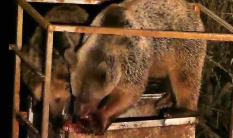 Tunceli’nin Pülümür ilçesinde anne ayı ve yavruları açlıklarını gidermek için gece geç saatlerde ilçe merkezinde bulunan mezbahaneye kadar indi. Doğa Fotoğrafçısı Ayhan Özdemir mezbahanenin konteynerinden hayvan sakatatları ile iç organlarını çıkaran ayıları görüntüledi. Ayılar, Özdemir’in çekimlerine aldırış etmeden karnını doyurdu. Uzun süre karınlarını doyurmakla uğraşan ayılar, daha sonra ilçe merkezinden ormanlık alana giderek gözden kayboldu.