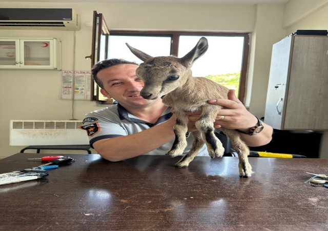 Annesini kaybeden yavru yaban keçisi güvenlik kulübesine sığındı
