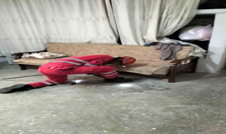 Hatay’da eve giren yılan itfaiye ekipleri tarafından yakalandı.