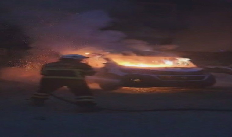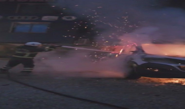 Hatay’ın Antakya ilçesinde park halindeki minibüs alev alev yandı. O anlar cep telefonu kamerasıyla görüntülendi.