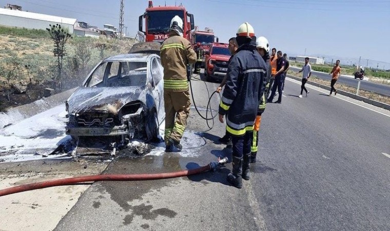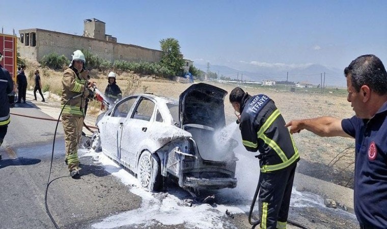 Hatay’da seyir halindeyken yanan araç kullanılmaz hale geldi.