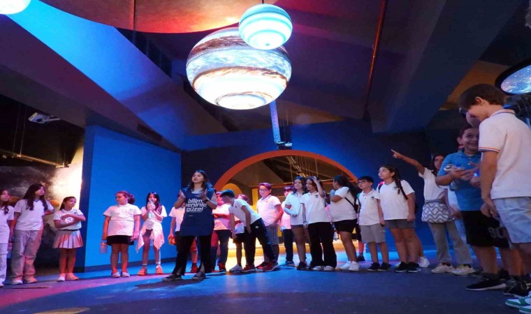 Gök bilimine meraklı çocuklar, Antalya Bilim Merkezi’nde evrenin en ihtişamlı patlaması olan süpernovaları öğrenirken analitik düşünme becerisi kazanıyor.
