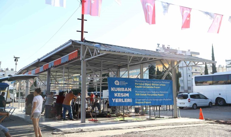 Kurban Bayramı nedeniyle Antalya Büyükşehir Belediyesi, Soğuksu Mahallesi Perşembe Pazarı, Yeşilbahçe Mahallesi Kapalı Çarşamba Pazarı ve Döşemealtı Kömürcüler Hayvan Pazarı’nda veteriner hekim kontrolünde ücretsiz kurban kesimi yapıyor.