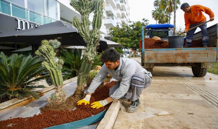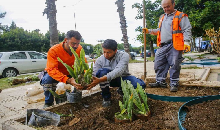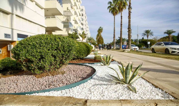 Antalya Büyükşehir Belediyesi, şehri güzelleştirmek adına yaptığı çalışmalara devam ediyor. Bu çerçevede Antalya Büyükşehir Belediyesi Park ve Bahçeler Şube Müdürlüğü ekipleri tarafından, şehrin işlek caddelerinden, Konyaaltı Caddesi’nde kurakçıl peyzaj çalışması yapıldı.