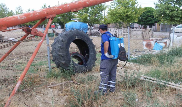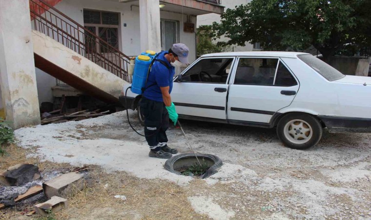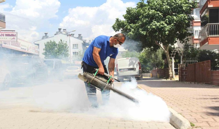 Büyükşehir ekipleri, geceleri de araçlarla dolaşarak ilaçlama yapıyor.