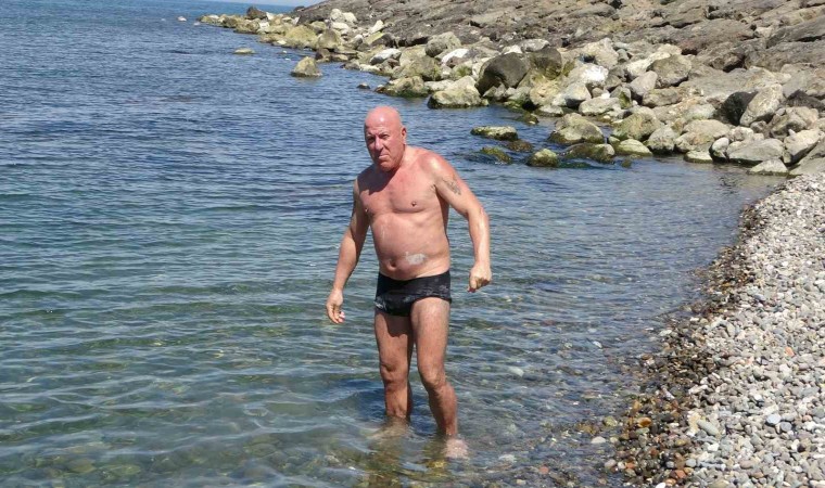 40 yıldır deniz suyu sıcaklığına bakmadan denize girdiğini belirten 60 yaşındaki Cengiz Aytekin, bu sayede hiç hastalanmadığını söyledi. Deniz suyunun soğuk olmasına rağmen sıcak havayı fırsat bilerek denize girdiğini belirten Aytekin, "60 yaşındayım. 40 yıldır buraya gelir yüzerim, futbol oynarım, sporumu yaparım. Spor benim aşkım. Deniz suyunun soğuk olması da benim için önemli değil yaz, kış ayırt etmem girerim. Kendine güvenen gelsin yüzsün çelik gibi olurlar hasta, grip olmazlar. Şu anda deniz suyu soğuk ama insan girince çelik gibi oluyor. Genelde deniz mevsimi Haziran ayı başlarında başlar ancak bizim için Haziran-Ocak ayı hiç fark etmiyor" dedi.