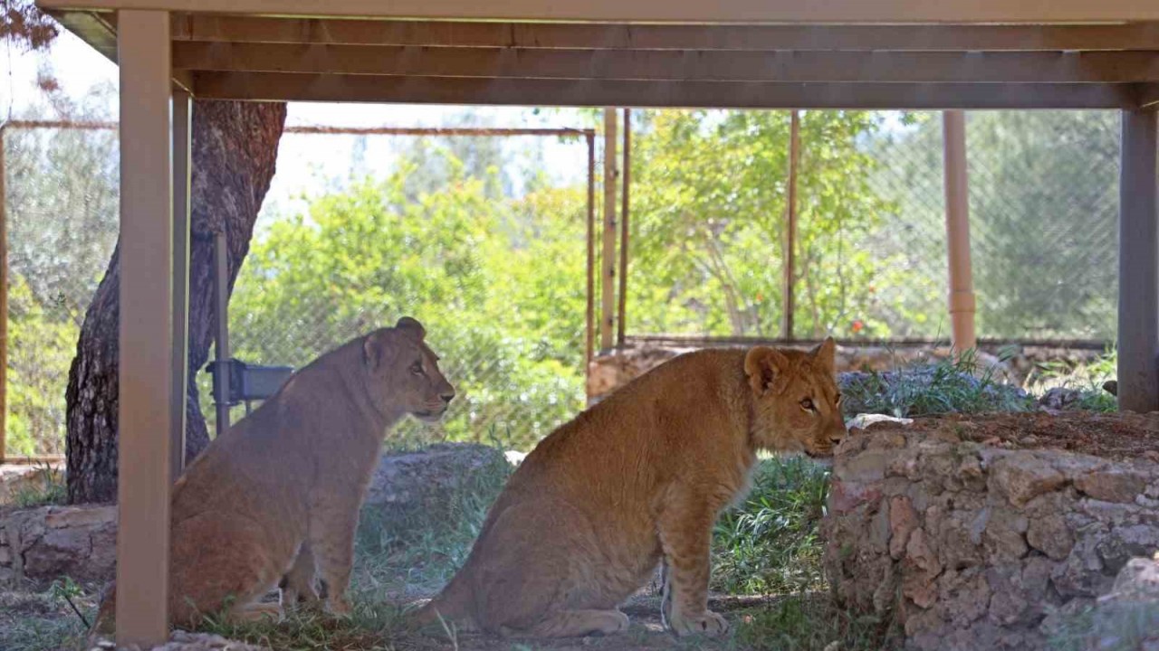 Antalya hayvanat bahçesinde dünyaya gelen 9 aylık iki yavru aslan ‘Zeus ile Hera’ aileye katıldı