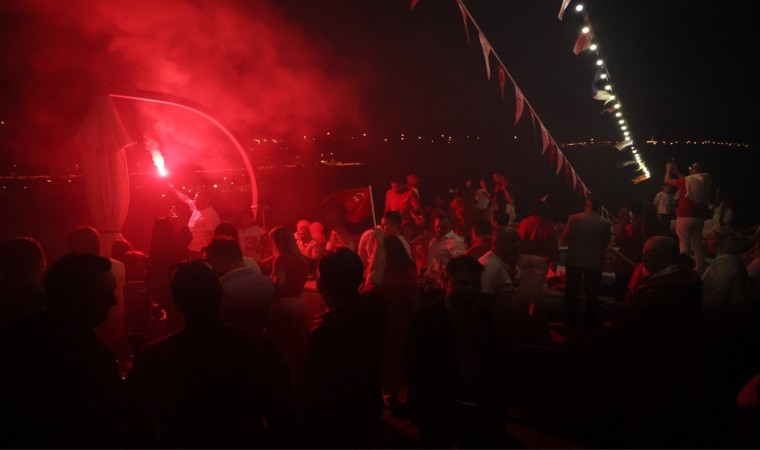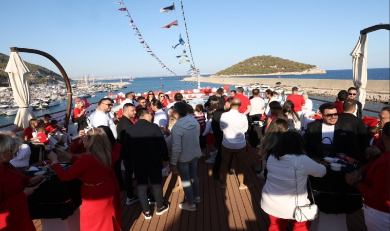 Antalya İş İnsanları Derneği’nce düzenlenen (ANTİAD) Cumhuriyet’in 101’nci yılı kutlamaları renkli görüntülere sahne oldu. Kırmızı-beyaz renklere bürünen gemiyle Konyaaltı Varyantı’nın tam karşısına demir atan ANTİAD üyeleri, korteje gemiden eşlik etti.
