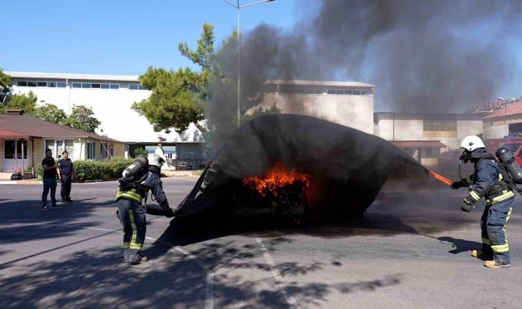 Antalya Büyükşehir Belediyesi itfaiye ekipleri, yeni alınan elektrikli araç yangın kitini uygulamalı olarak öğreniyor. Antalya itfaiyesi bünyesine bulunan yangın battaniyesiyle de araç yangınlarına hızlı müdahale edilebiliyor. Antalya Büyükşehir Belediyesi İtfaiye Dairesi Başkanlığı Müdahale Şube Müdürü Hidayet Yıldırım, Antalya’da elektrikli araç sayısının artmasıyla birlikte oluşabilecek kaza ve yangınlarına müdahale yöntemlerine yönelik itfaiye teşkilatının eğitimlerinin sürdüğünü kaydetti.