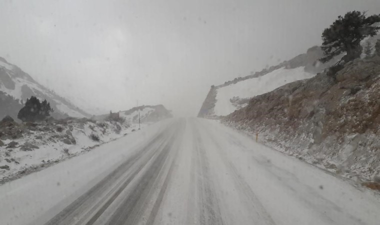 Antalya’yı Konya’ya bağlayan Akseki-Seydişehir kara yolunda aralıklarla kar yağışı başladı.